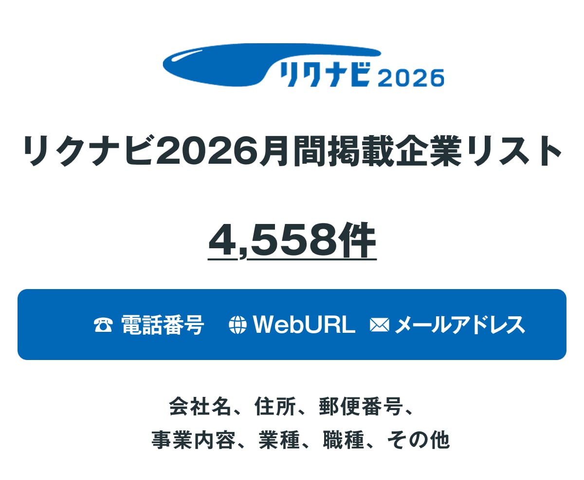 リクナビ2026 2月 掲載企業リスト【4558件】