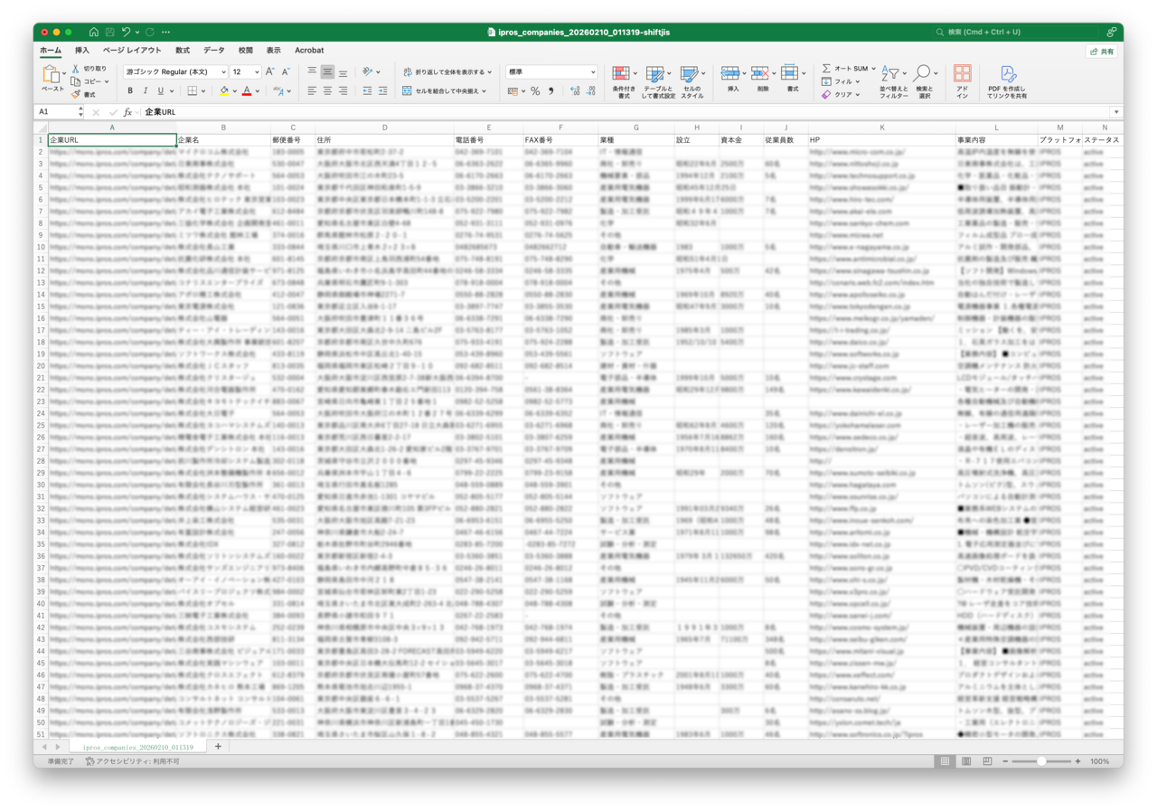 iPROS等のBtoB製造業向けプラットフォームに掲載中の企業データを独自に収集し、