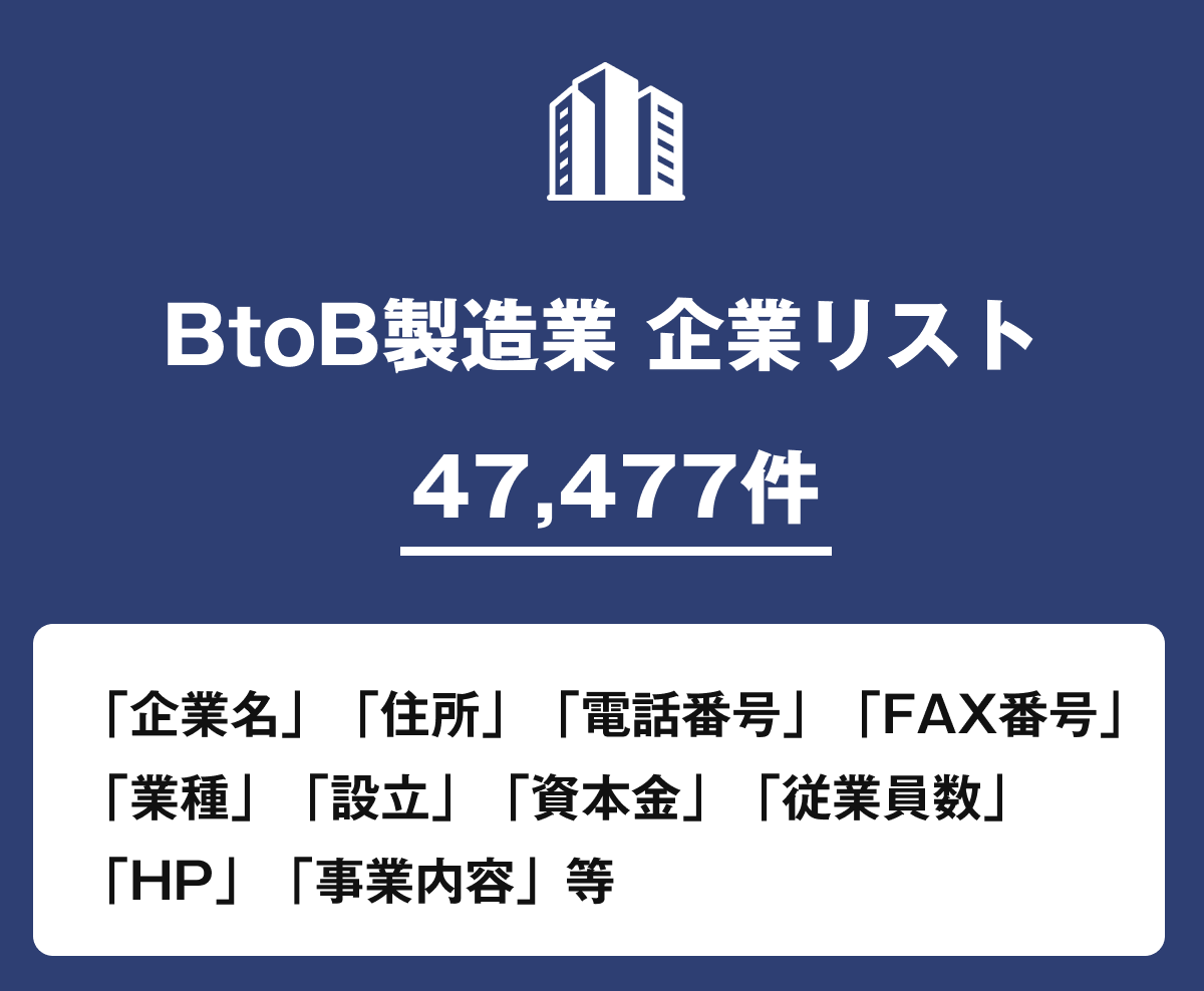 BtoB製造業 企業リスト【47,477件 ※一部電話番号、FAX番号を含む】